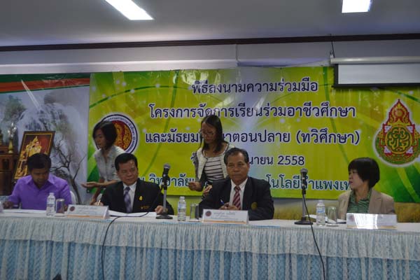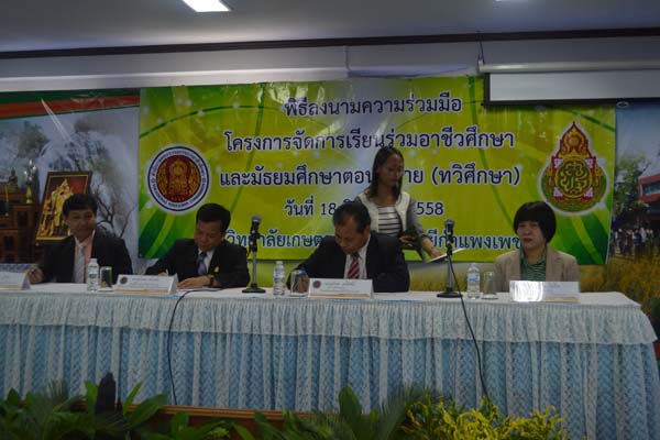 ร่วมมือ "โครงการจัดการเรียนร่วมอาชีวศึกษา และมัธยมศึกษาตอนปลาย (ทวิศึกษา)" ระหว่าง วิทยาลัยเกษตรและ
