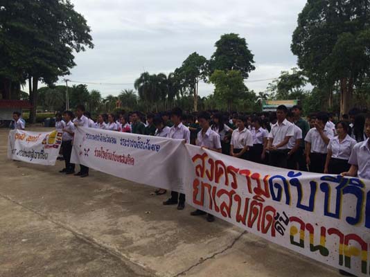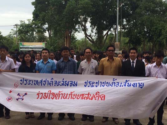 กิจกรรมวันต่อต้านยาเสพติดโลก วันที่ 26 มิถุนายน 2558 โดยมีคณะผู้บริหาร ครู เจ้าหน้าที่ นักเรียนนักศึกษา